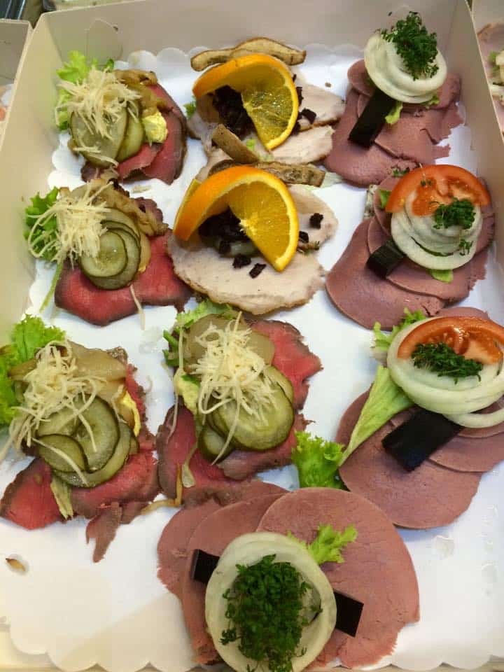 Der pålægges dog et tillæg på 3 kr. pr. stykke ved bestilling af specifikke smørrebrød.